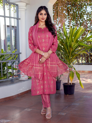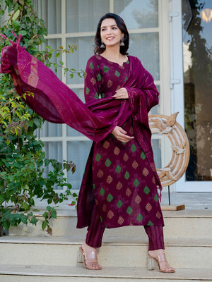 Stylish Printed Cotton Suit Set with Dupatta