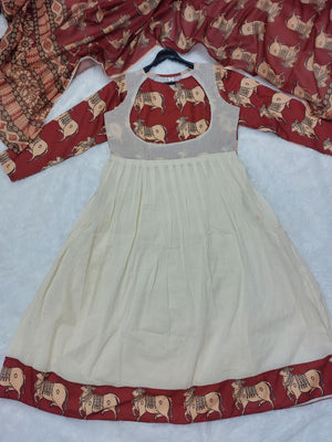 Gaja: Elephant Block Print Cotton Anarkali Suit Set