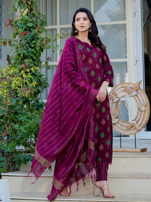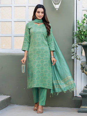 Home Stylish Printed Cotton Suit Set with Dupatta